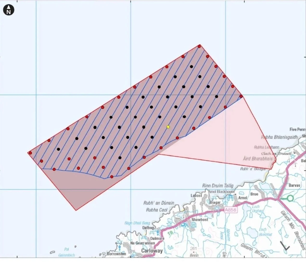 Transmission across the island, currently proposed to be undergrounded through the Lewis peatlands but surveying for pylons has also been undertaken.